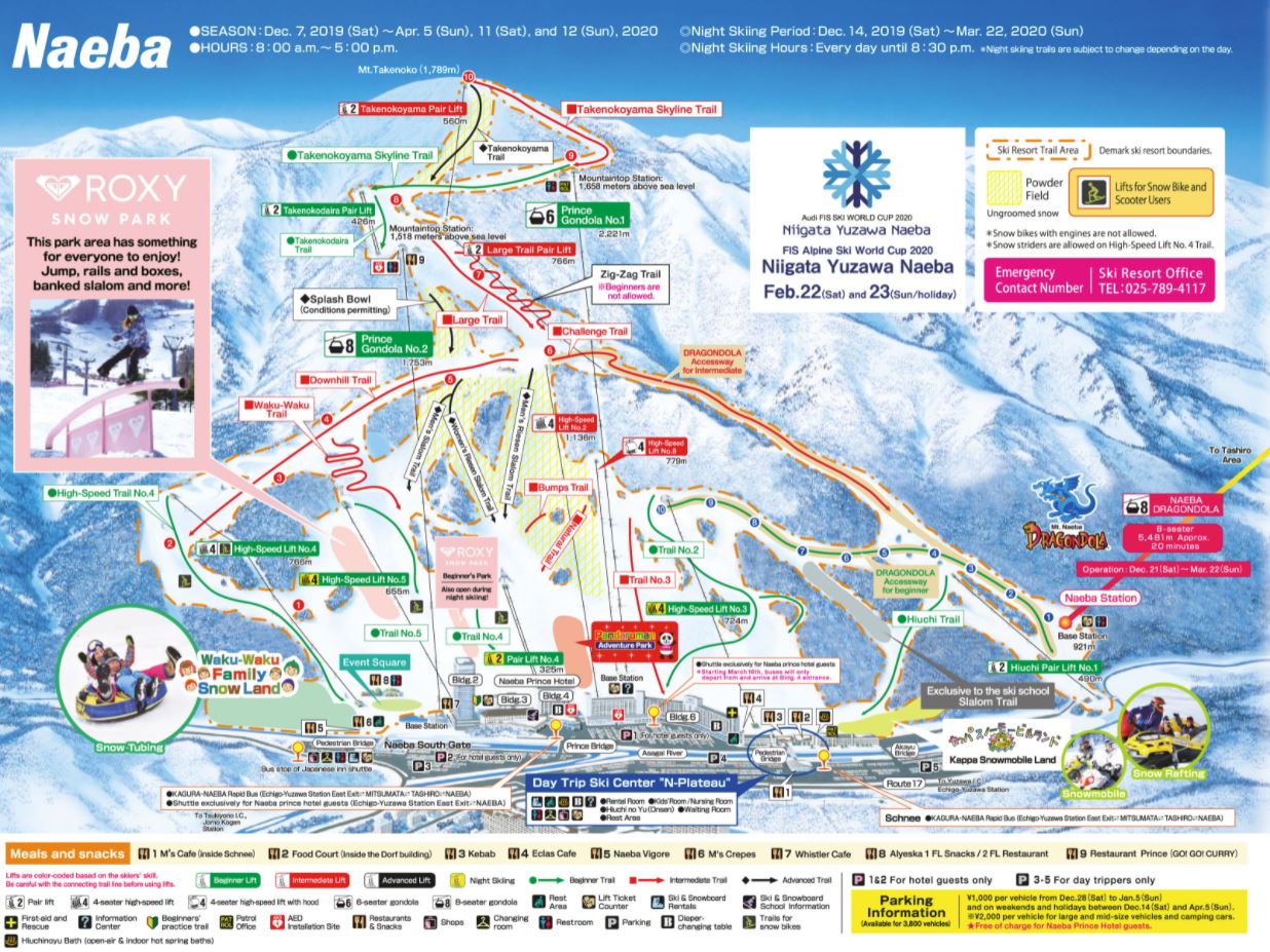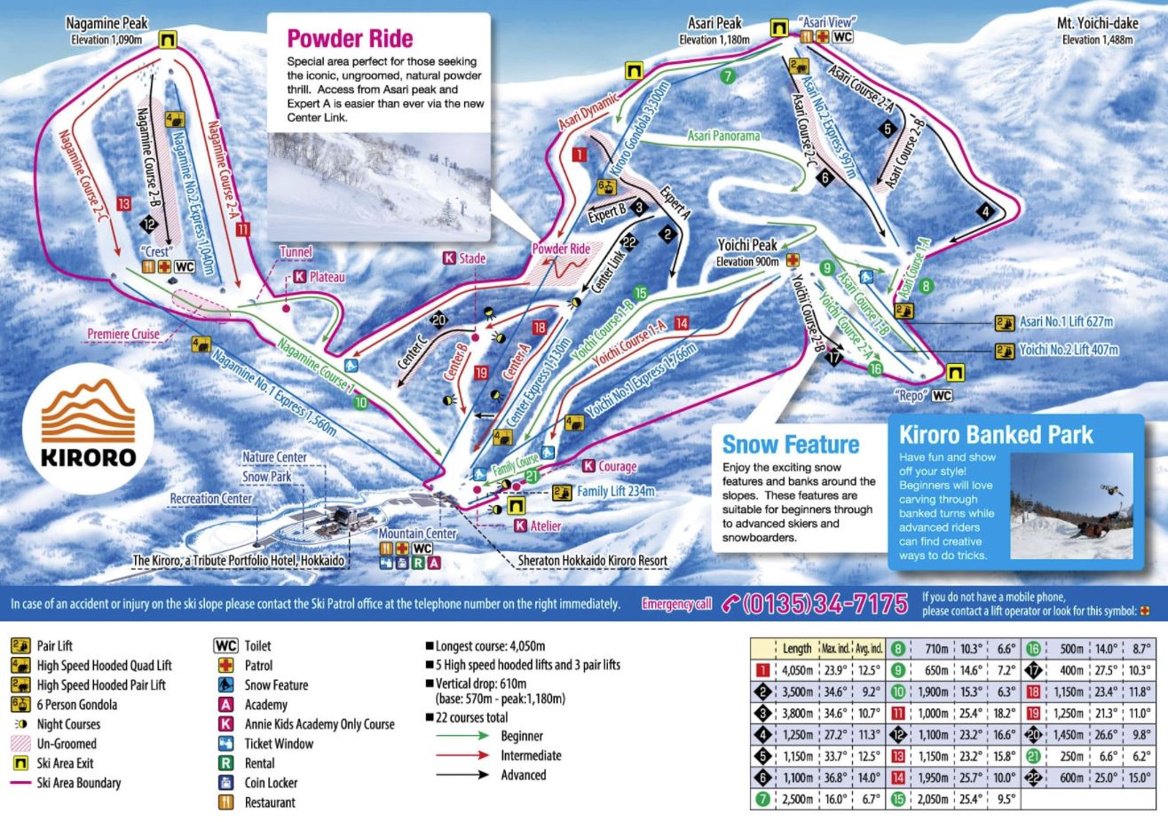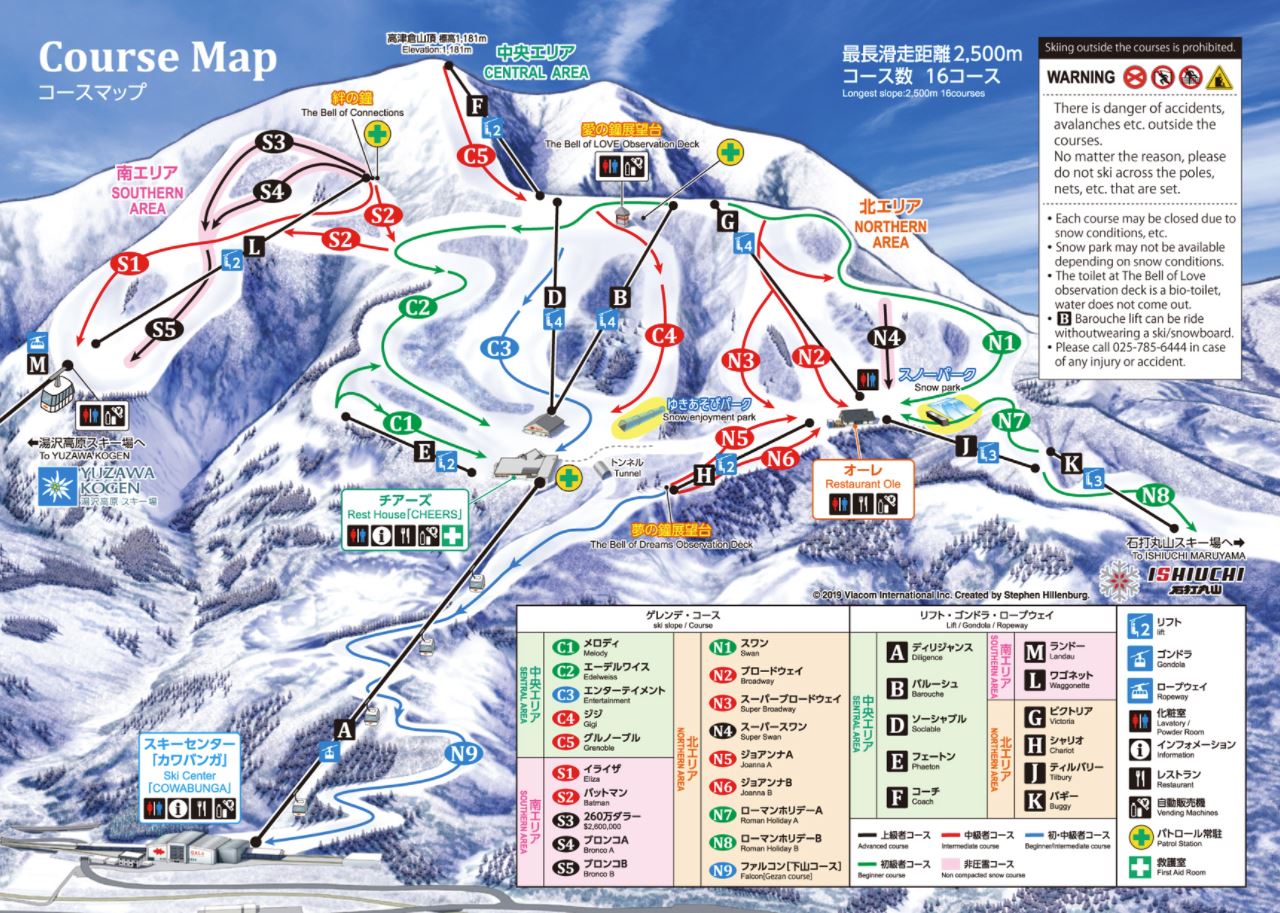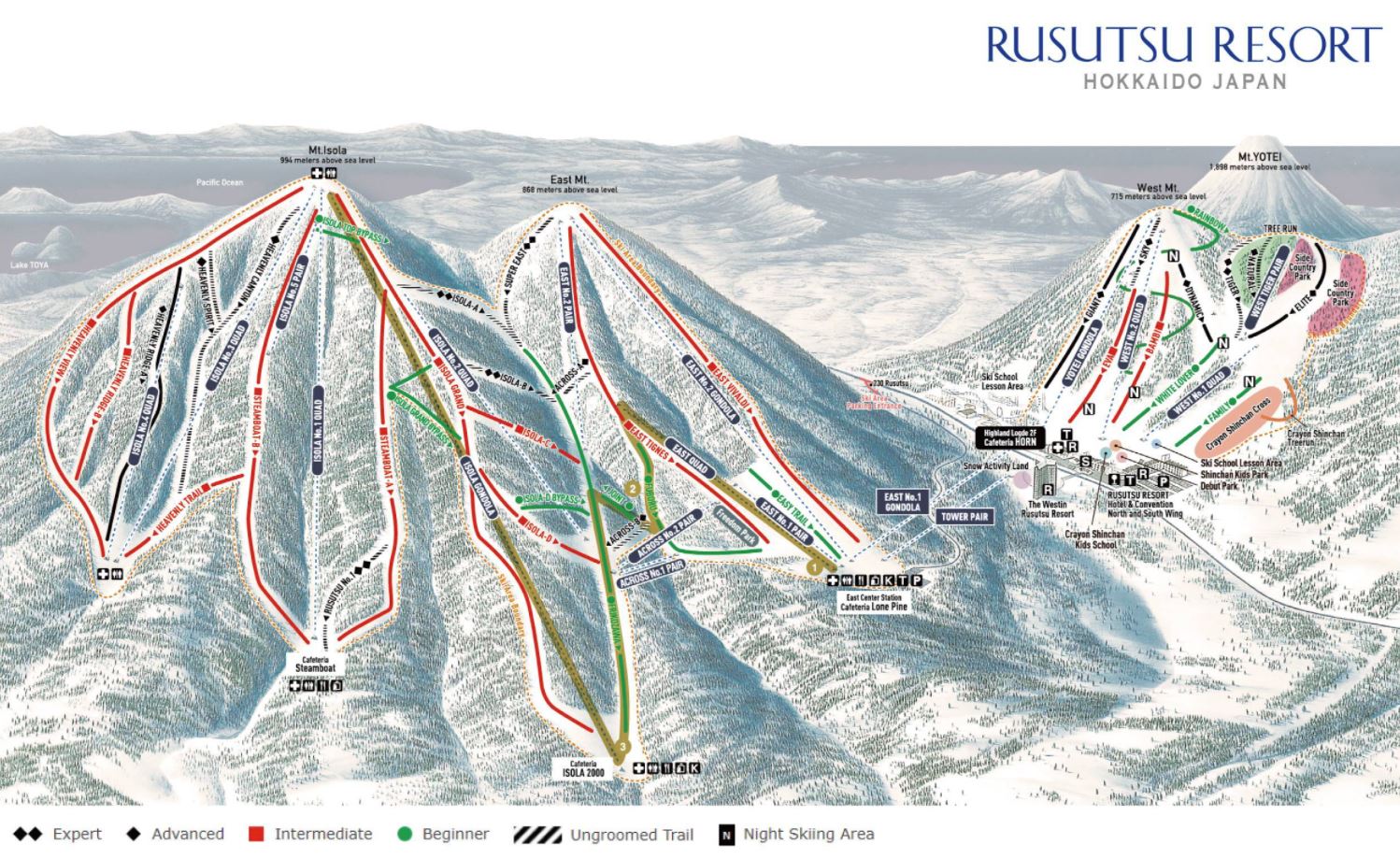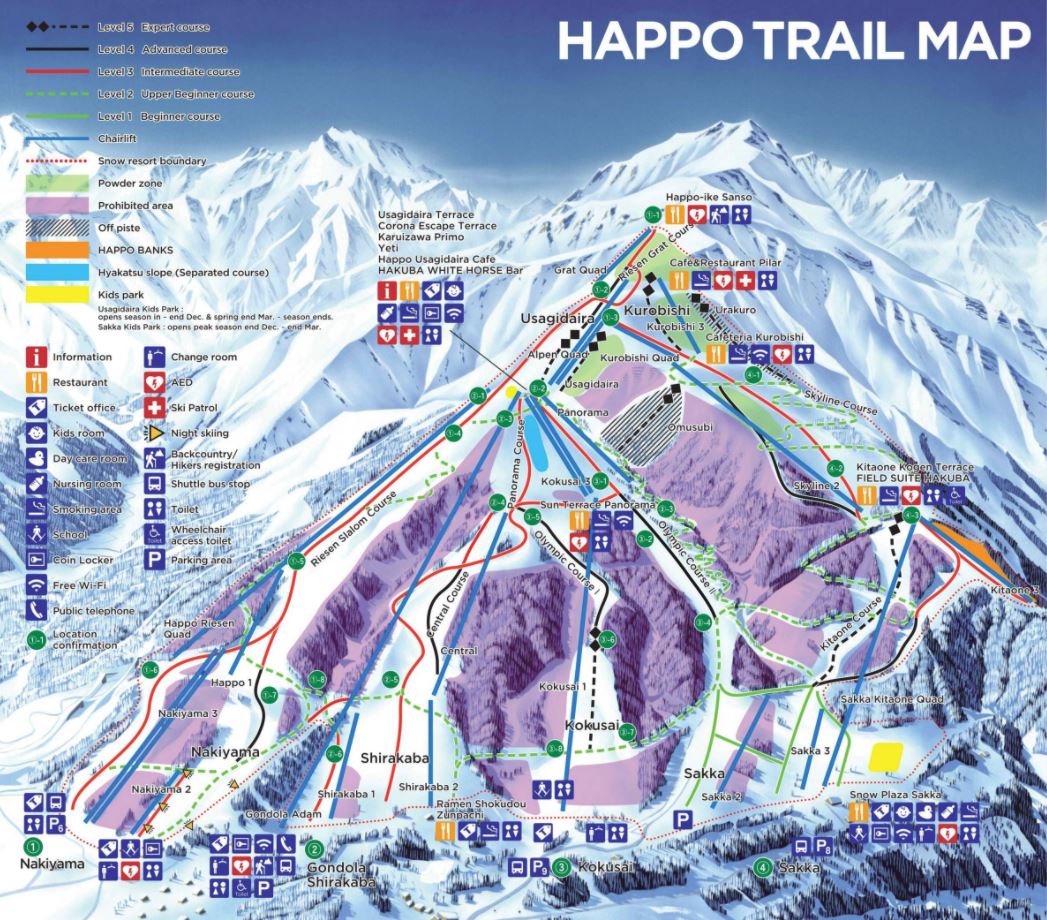 La estación de esquí está dividida en dos zonas principales (Highland Zone y Olympia Zone) En una de ellas hay pistas más suaves para principiantes, y en la zona alta están algunas de las pistas más elevadas de Japón.