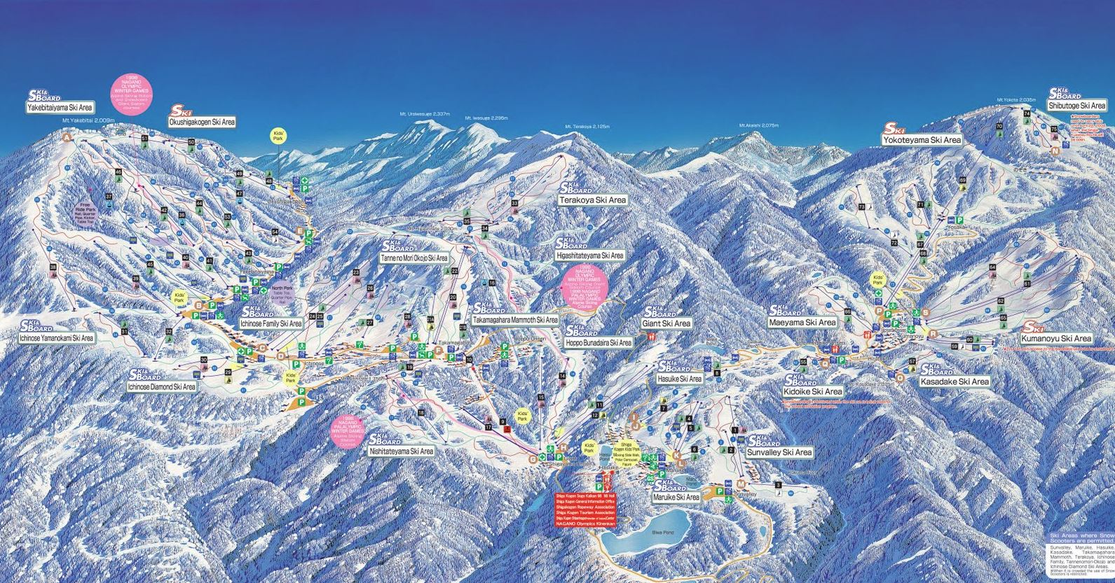 Al tener una localización tan céntrica, es la estación para esquiar en Japón interconectada más grande del país. Es una zona famosa con estaciones de esquí.