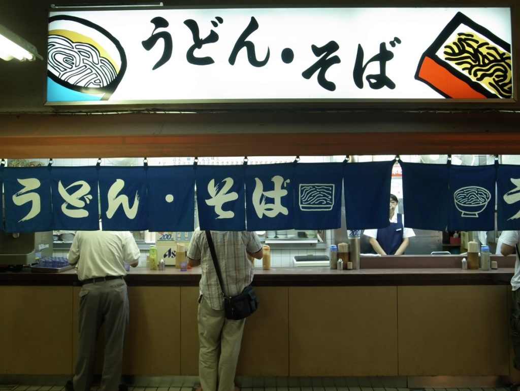 Este tipo de locales de comida rápida en Japón están por todas partes. Son más habituales en las estaciones de trenes, tanto en los largos pasillos que van de un andén a otro, e incluso en los mismos andenes.